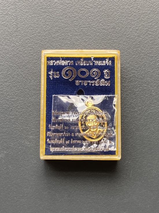 เม็ดแตงหลวงปู่ทวด หลังอาจารย์ทิม รุ่น101ปี เนื้อทองแดงนอกชุบทองลงยาดำ |