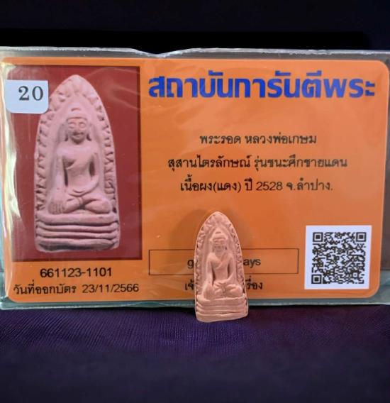 พระรอดหลวงพ่อเกษม สุสานไตรลักษณ์ รุ่นชนะศึกชายแดน เนื้อผงแดง ปี 2528 จ.ลำปาง สวยๆพร้อมบัตรรับรองค่ะ