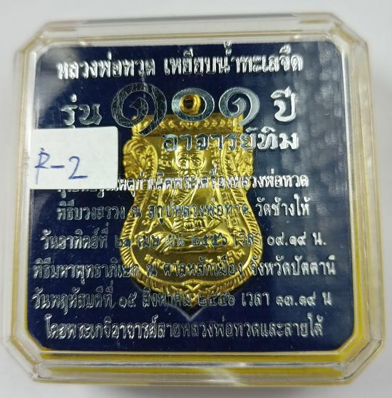เหรียญเสมาหน้าเลื่อน หลวงพ่อทวด 101ปี อ.ทิม เนื้อทองขาวชุบทอง (แจกกรรมการ โค๊ด ก ตอก2โค๊ด) พร้อมกล่องเดิมครับ (P-2)