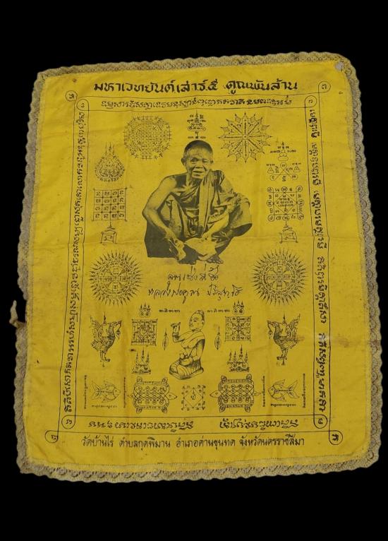 ผ้ายันต์ มหาเวทยันต์ เสาร์ ๕ คูณพันล้าน หลวงพ่อคูณ วัดบ้านไร่ จ.นครราชสีมา |