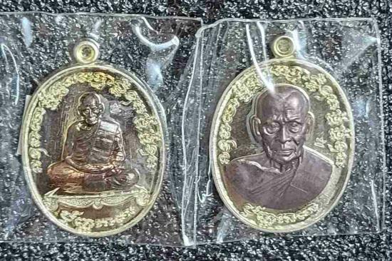 เคาะเดียวแดง เหรียญหลวงพ่อพัฒน์ รุ่นเจริญพร 2 เนื้ออัลปาก้า หน้ากากนว รวม 2 เหรียญ |