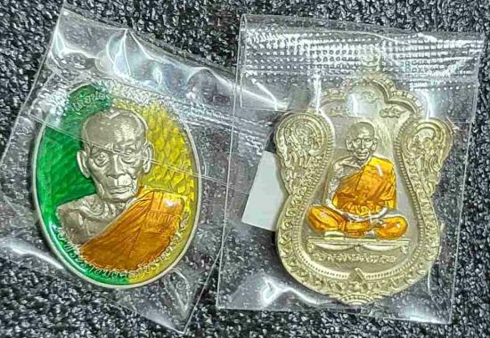 เพราะเดียวแดง เหรียญเลื่อนสมณศักดิ์ หลวงพ่อพัฒน์ เนื้ออัลปาก้า ลงยา รวม 2 เหรียญ