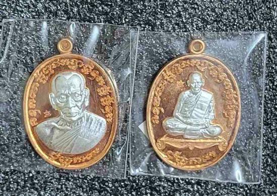 เคาะเดียวแดง เหรียญหลวงพ่อพัฒน์ รุ่นเจริญพร 2 เนื้อทองแดงหน้ากากเงิน รวม 2 เหรียญ |