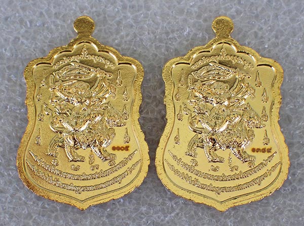 $เคาะแรกเบาวัดใจทีเดียว 2 องค์ค่ะ เหรียญเสมา รุ่น มหาเศรษฐี ๘๐ หลวงพ่อเอื้อน วัดวังแดงใต้ จ.พระนครศรีอยุธยา เนื้อกะไหล่ทองลงยาสีแดง เลข ๑๑๐๕ + เนื้อกะไหล่ทองลงยาสีน้ำเงิน เลข ๑๓๘๙ พร้อมกล่องเดิมค่ะ$