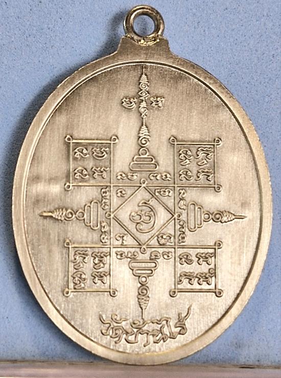 เหรียญรูปไข่ เนื้อเงินซาติน พ่นทรายสามกษัตริย์ ห่วงเชื่อม หลวงพ่อทองวัดบ้านไร่