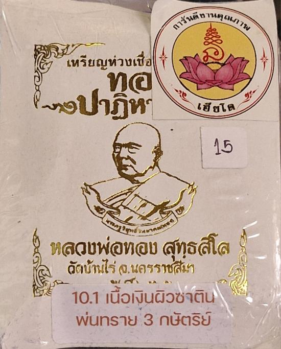เหรียญห่วงเชื่อม หันข้าง เหรียญรูปไข่ หลวงพ่อทอง วัดบ้านไร่ รุ่นทองปาฏิหาริย์ เนื้อเงินผิวซาตินพ่นทรายสามกษัตริย์ ตอกโค๊ตศาลารอบเหรียญ Number 15 มาพร้อมกล่องกำมะหยี่ สวยหรู พี่ๆท่านใดชอบเชิญครับ