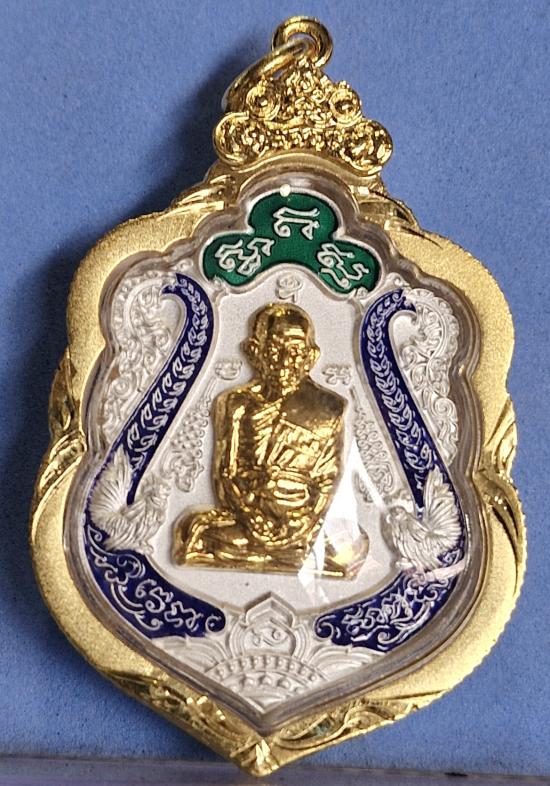 เหรียญเสมาหลวงพ่อรวย วัดตะโก รุ่นรวยทันใจ เนื้อ ชุบเงิน ลงยา หน้ากากทองทิพย์ ปี 66 มาพร้อมกรอบ ทองไมครอน สวยงามขึ้นคอได้ทันที Number 2511 พร้อมกล่องเดิม