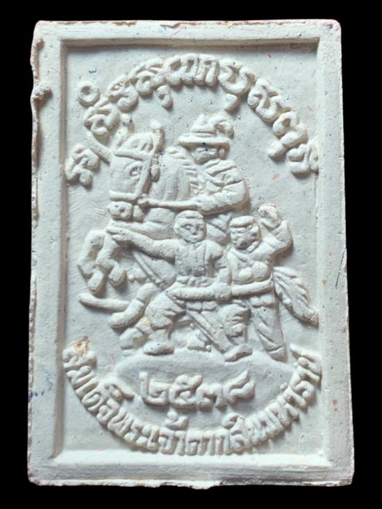 พระพุทธโสธรเนื้อผง หลังสมเด็จพระเจ้าตากสินมหาราช พิมพ์สี่เหลี่ยมฝังตะกรุดทองคำ ปี 2538 สภาพสวยเดิม พร้อมกล่อง |