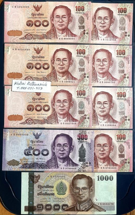 ธนบัตร 100, 500 และ 1,000 บาท ร.9 ผ่านใช้น้อย หมวด S ทุกใบ