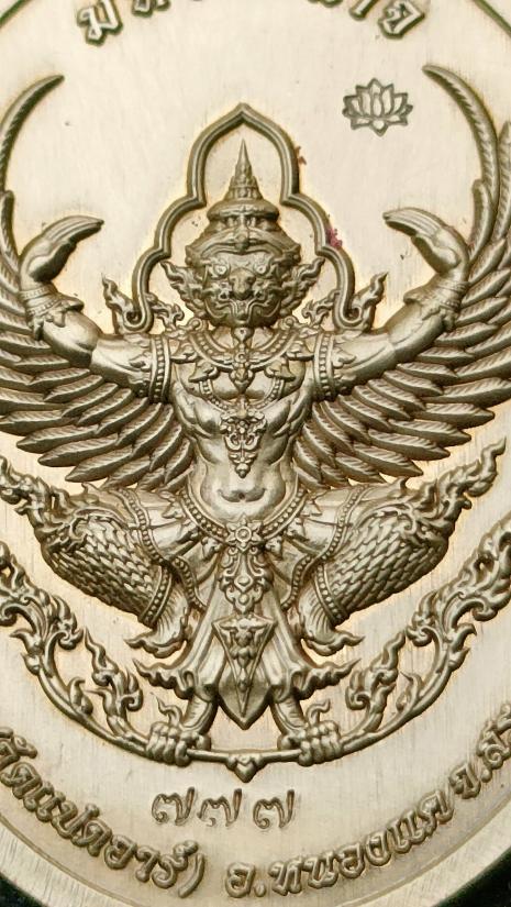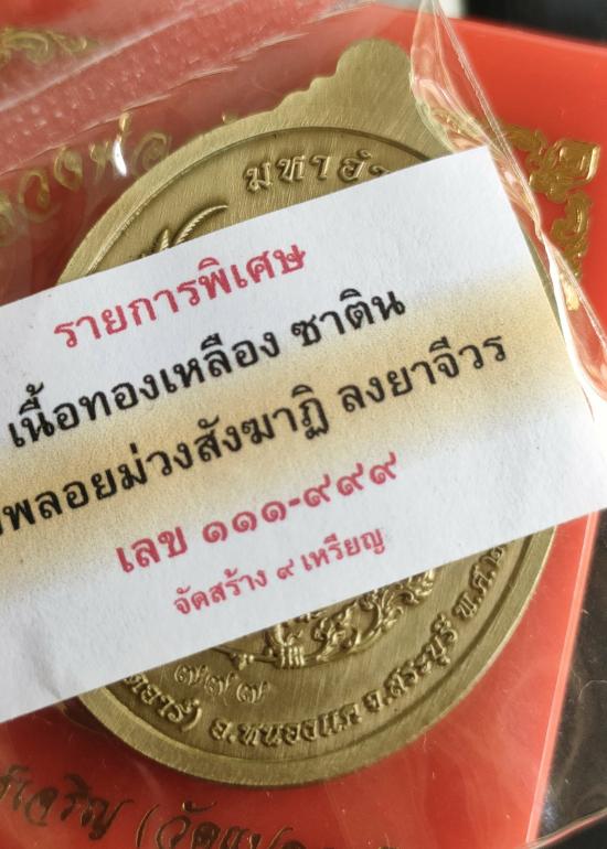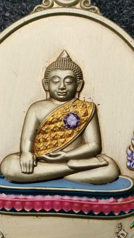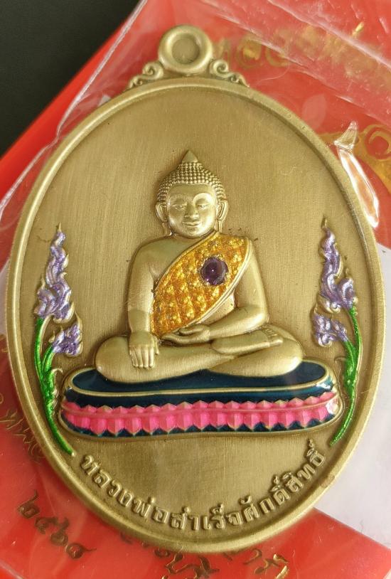 เหรียญหลวงพ่อสำเร็จ ศักดิ์สิทธิ์ รุ่น"จงสำเร็จ" วัดราษฎร์เจริญ(วัดแปดอาร์) เนื้อทองเหลืองซาติน ฝังพลอยม่วงสังฆาฏิ ลงยาฐานน้ำเงิน-ชมพู หลังพญาครุฑ เลข ๗๗๗ (ตอง777) พร้อมกล่อง เลขเจ้า สำเร็จสมปราถนา