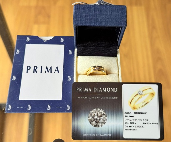 เเหวนเพชรแท้ 18k กล่องการดครบ ของ Prima gold