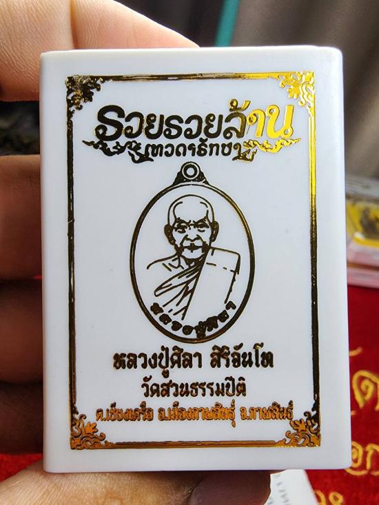 หลวงปู่ศิลา สิริจันโท รุ่น รวยรวยล้าน เทวดารักษา เนื้อสัตตะ หน้ากากเงิน เบอร์ 497