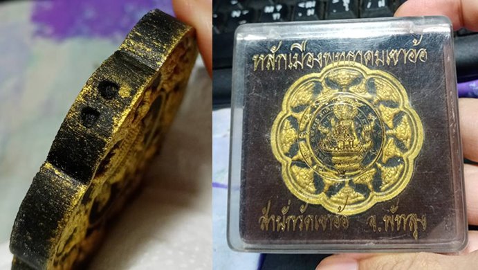 ชื่อพระเครื่อง 139..... รุ่นหลักเมืองพุทธาคมเขาอ้อ ปี ๒๕๔๙ เนื้อมหาว่านดำ โรยไม้มงคล ปิดทองกรรมการ 2 โค๊ต สวยเดิมกล่องเดิม ...รุ่นหลัก..3
