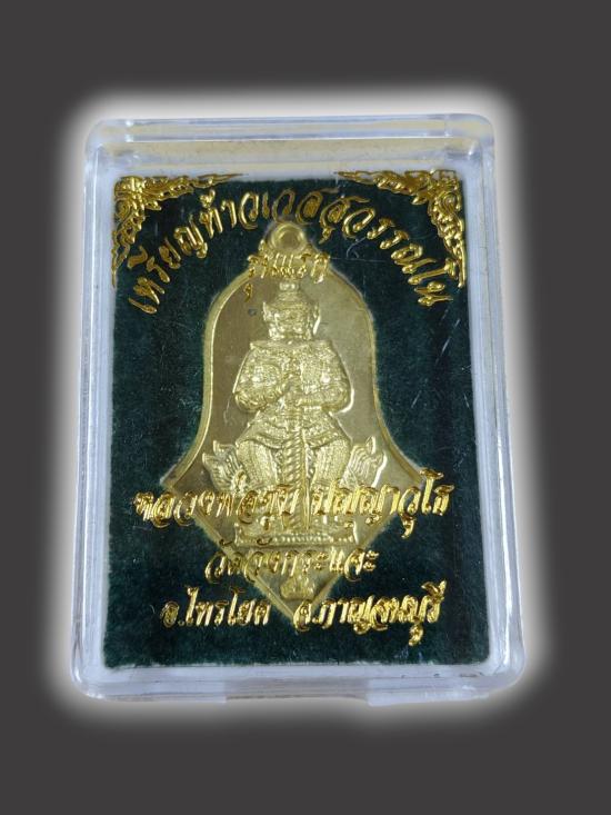 A3249.ท้าวเวสสุวรรณ รุ่นแรก หลวงพ่อชุบ วัดวังกระแจะ กาญจนบุรี เนื้อทองทิพย์ ปี 63 ตอก 2โค๊ต หมายเลข 7393 กล่องเดิม |