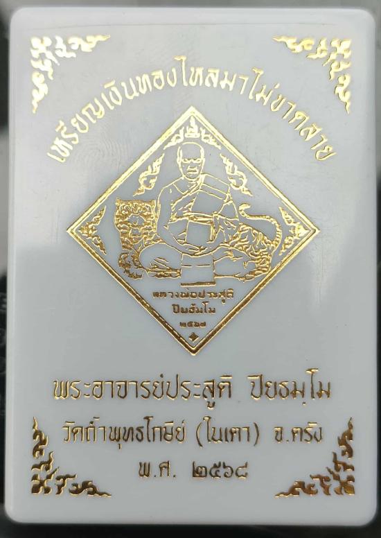 เหรียญพิมพ์ข้าวหลามตัด"เงินทองไหลมาไม่ขาดสาย"หลวงพ่อประสูติ ปิยธัมโม วัดถ้ำพระพุทธโกษีย์(ในเตา)จ.ตรัง เนื้อชนวนดำตัดเรียบ หน้าทองเหลือง หลังจารมือหลวงพ่อ หมายเลข ๒๗๖ พร้อมกล่อง เหรียญสวย100ๆ สร้าง350เหรียญ พิเศษเหรียญจารมือน่าจะมีไม่เกิน10เหรียญ |