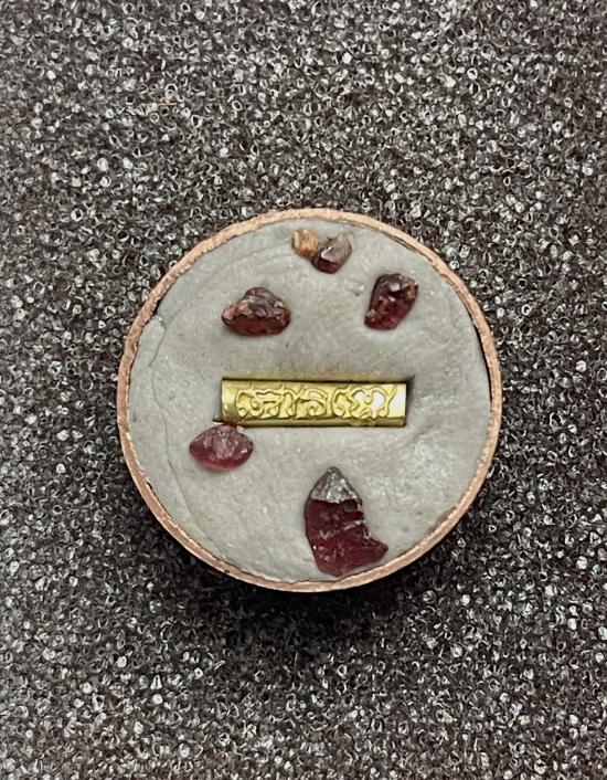 “เนื้อสัมฤทธิ์เดช" (วรรณออกแดง) หลังอุดมวลสารตะกรุดและพลอยเสก หมายเลข 37