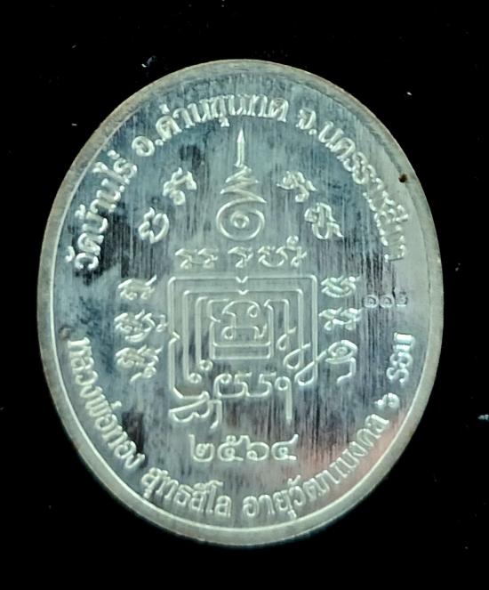 หลวงพ่อทอง วัดบ้านไร่ เหรียญรุ่น 5 แชะ เนื้อเงินบริสุทธิ์ ลงยาม่วงขอบส้ม NO.๑๑๒