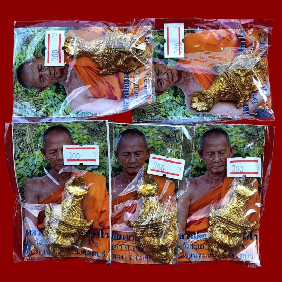 ชุด 5 องค์...เศียรปู่เสือสมิงพราย รุ่นไหว้ครู เนื้อทองชมพู ปี 2557 หลวงปู่สมชาย วัดคงคา จ.กาญจนบุรี พร้อมซองรูปเดิมจากวัด |