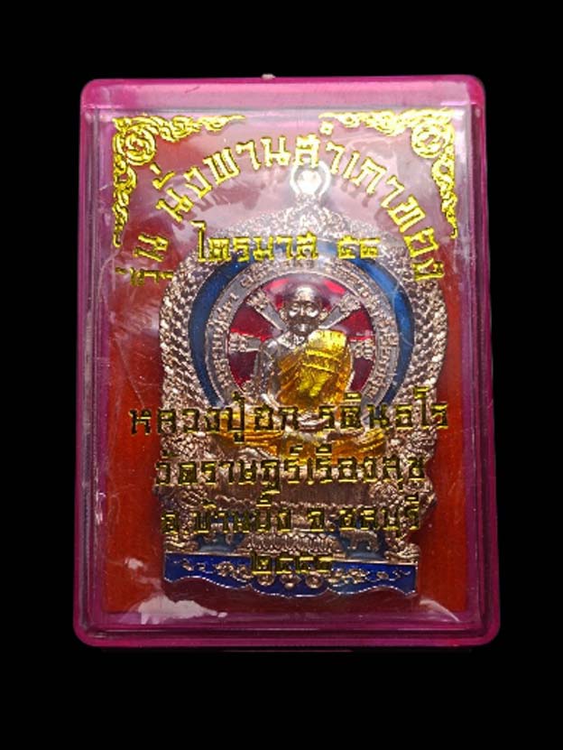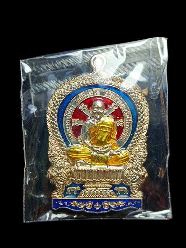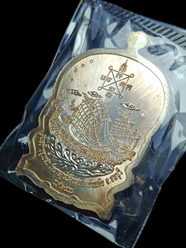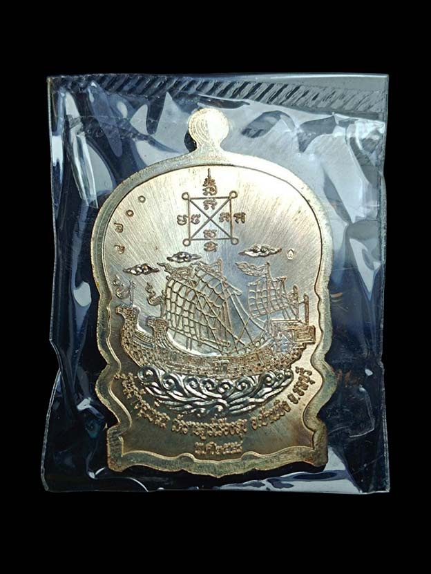 เหรียญนั่งพานสำเภาทอง หลวงปู่ฮก วัดราษฏร์เรืองสุข จ.ชลบุรี ปี 2558 เนื้ออาบเงินลงยาสี ตอกโค้ต หมายเลข 9700 ซีลเดิม พร้อมกล่อง ผิวสวยๆ |