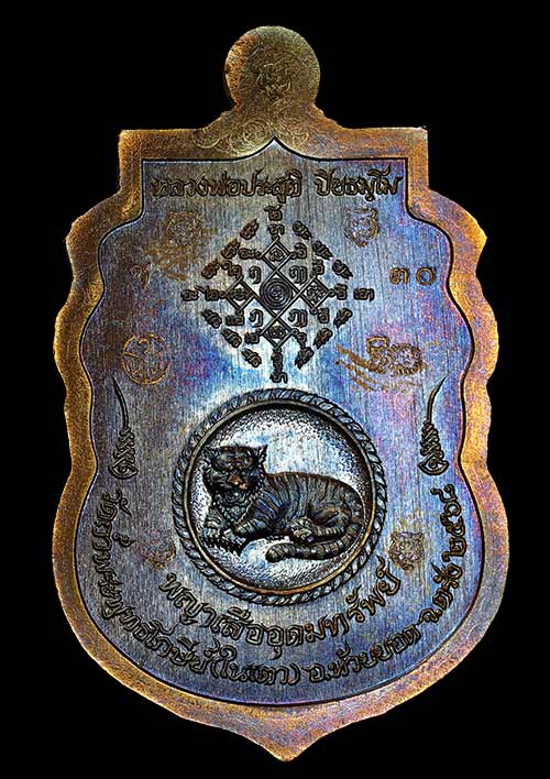 1ใน 90 เหรียญเสมาพญาเสืออุดมทรัพย์ พระอาจารย์ประสูติ (หลวงพ่อประสูติ) วัดในเตา ตรัง เนื้อชนวนม่วงเพ้นท์จีวรทองตอกหัวเสือรอบ เลขสวยๆNO.30 สวยมากครับ |