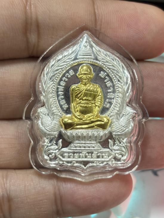 HOT!!! เหรียญรวยพันล้าน แถมทองคำ เนื้อเงินหน้าทองคำ เลข 982 พระสวย หลวงพ่อรวย วัดตะโก เคาะเดียวแดง