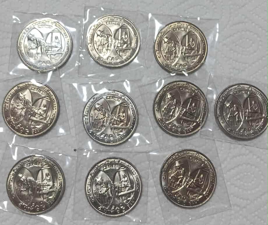 ถวายความอาลัย "พระบรมราชชนนีพระพันปีหลวง" เหรียญ 5 บาท พระราชินี FAO CERES 12 สิงหาคม พ.ศ.2523 สภาพไม่ผ่านการใช้งาน UNC สวยน้ำทอง จำนวน 10 เหรียญ ครับ |