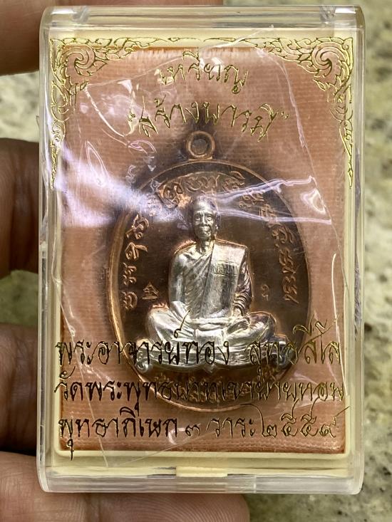 เหรียญสร้างบารมี หลวงพ่อทอง สุทธสีโล วัดพระพุทธบาทเขายายหอม ปี 2559 เนื้อนวะโลหะหน้ากากเงิน เลข 138 กล่อง สร้างน้อย 999 เหรียญ |