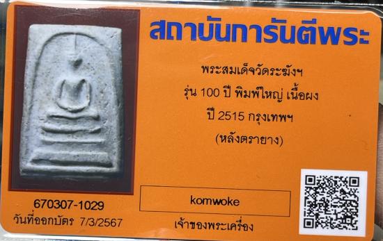 พระสมเด็จ วัดระฆังฯ รุ่น อนุสรณ์ 100 ปี พิมพ์ใหญ่ เนื้อผง หลังตรายาง ปี2515 พร้อมกล่อง