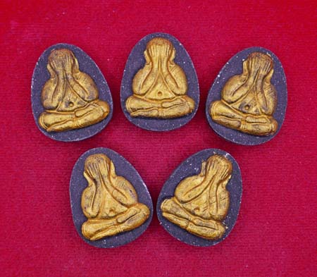 !!!!วัดใจ 9 บาท!!!! 5 องค์ พระผงปิดตา มหาลาภ ญสส วัดบวรนิเวศวิหาร พ.ศ.2535 เนื้อผงใบลาน(ดำ) ปัดทอง กล่องเดิม |