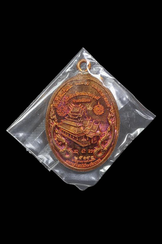 เหรียญฉลองโบสถ์ พระอาจารย์สุริยันต์ เนื้อทองแดง หมายเลข 25343 กล่องเดิม แดงวัดใจ 120