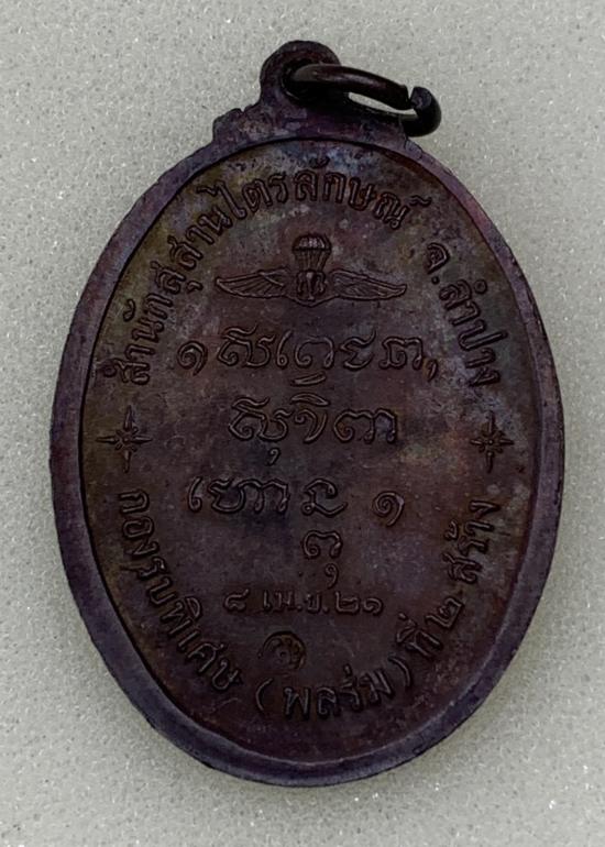เหรียญหลวงพ่อเกษม สำนักสุสานไตรลักษณ์ กองรบพิเศษ ( พลร่มที่ 2 ) จัดสร้าง ปี 2521 ตอกโค๊ต |
