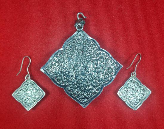 จี้เงินแท้ + ต่างหูเงินแท้ ลายดอกไม้ ตอกโค้ต 92.5% น้ำหนัก 17.60 กรัม |