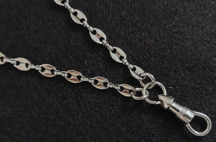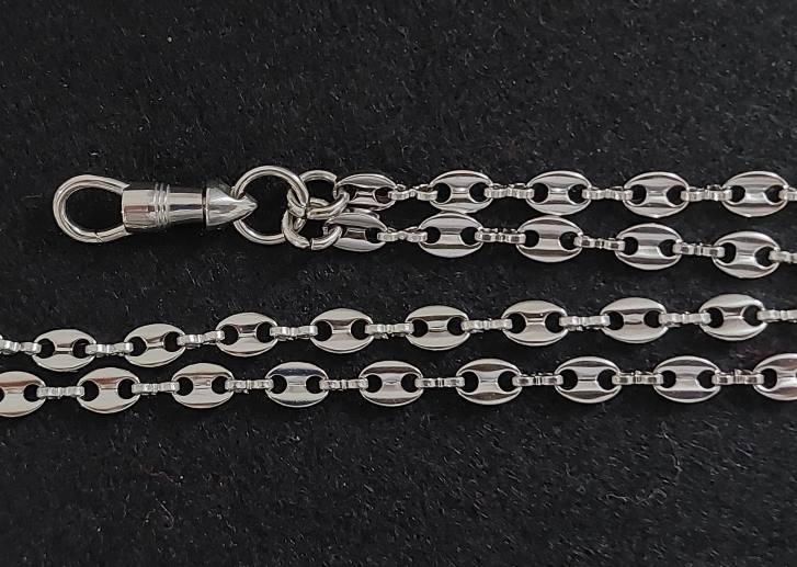 สร้อยสแตนเลสลายเมล็ดกาแฟ ยาว 26 นื้ว พร้อมสปริงก้ามปูสแตนเลสหมุนได้.. |