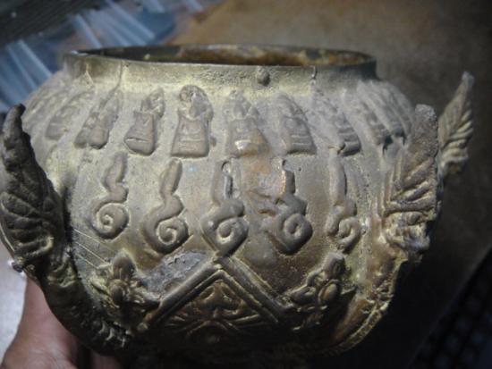 ขันน้ำมนต์นพเกล้า เนื้อทองผสมหล่อ ขนาดความกว้าง 3.5 นิ้ว สูง 11 นิ้ว พิธีใหญ่ 25 พุทธศตวรรษ ปี 2500 พระเกจิอาจารย์108 รูปทั่วประเทศปลุกเสก |