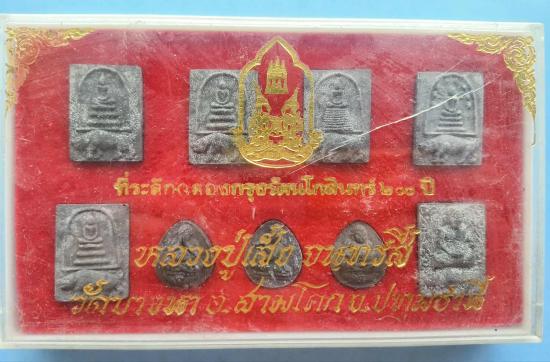 พระชุดที่ระลึกฉลองกรุงรัตนโกสินทร์ 200ปี หลวงปู่เส็ง จันทรังษี วัดบางนา อ.สามโคก จ.ปทุมธานี ปี 2525รวม9องค์ กล่องเดิม |