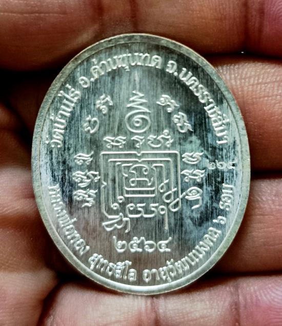 หลวงพ่อทอง วัดบ้านไร่ เหรียญรุ่น 5 แชะ เนื้อเงินบริสุทธิ์ ลงยาเขียว ขอบส้ม NO.๒๖๔