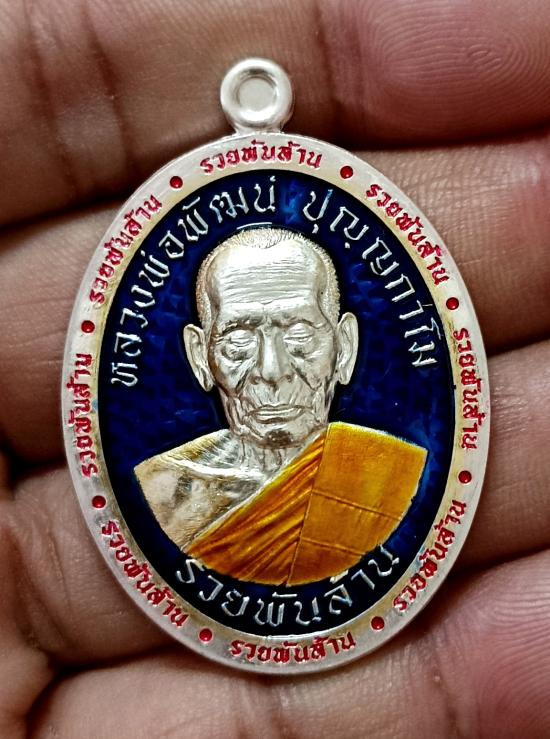 หลวงพ่อพัฒน์ เหรียญรุ่น รวยพันล้าน เนื้อเงินลงยาน้ำเงินเต็มสูตร NO.๒๒ |