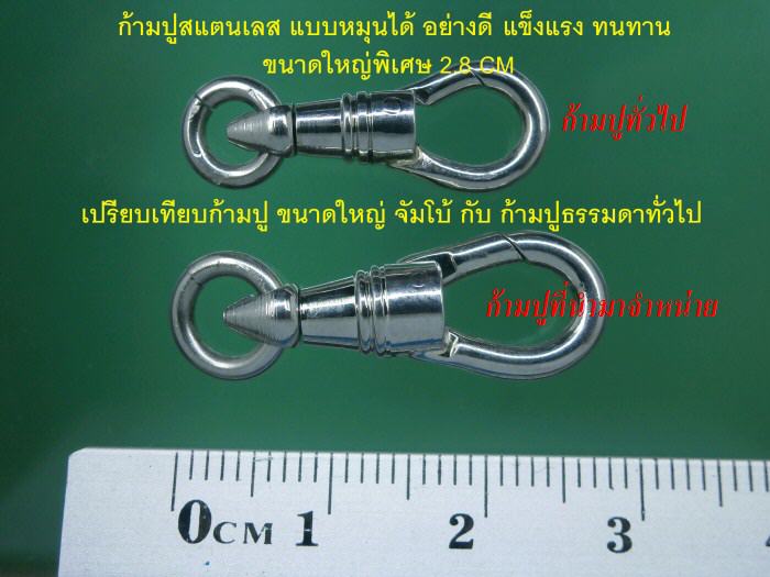 +++ เคาะเดียว +++ ก้ามปูสแตนเลสแท้อย่างดี ขนาดจัมโบ้ จำนวน 2 ตัว ( ขนาด 2.8 CM ) สำหรับคล้องสร้อยโอริง / สร้อยเชือกร่มแขวนพระ-เครื่องราง-งาแกะ-ตะกรุด-เบี้ยแก้-ลูกอม-กล้องส่องพระ-พญาครุฑ-สิงห์-พญานาค |