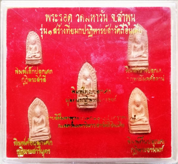<< วัดใจ >> ชุดพระรอด วัดมหาวัน จ.ลำพูน รุ่น 1 สร้างที่ยมกปาฏิหาริย์สาวัตถี ประเทศอินเดีย สภาพสวย ครบทั้ง 5 พิมพ์ |