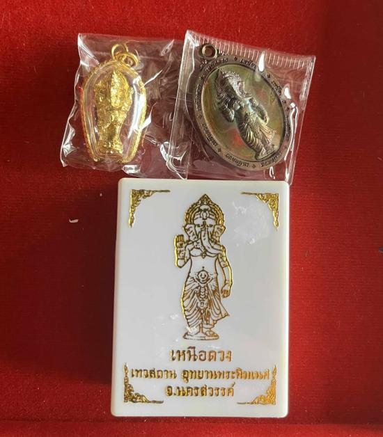เหรียญพระพิฆเนศ รุ่นเหนือดวง เทวสถานอุทยานพระพิฆเนศ จังหวัดนครสวรรค์ เลข 88 ในกล่องมีพระ 2 องค์ |