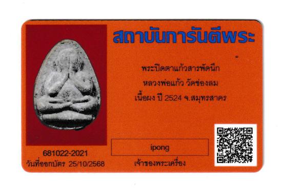 พระปิดตาแก้วสารพัดนึก หลวงพ่อแก้ว วัดช่องลม ปี 2524 สภาพสวย กล่องเดิม พร้อมบัตร