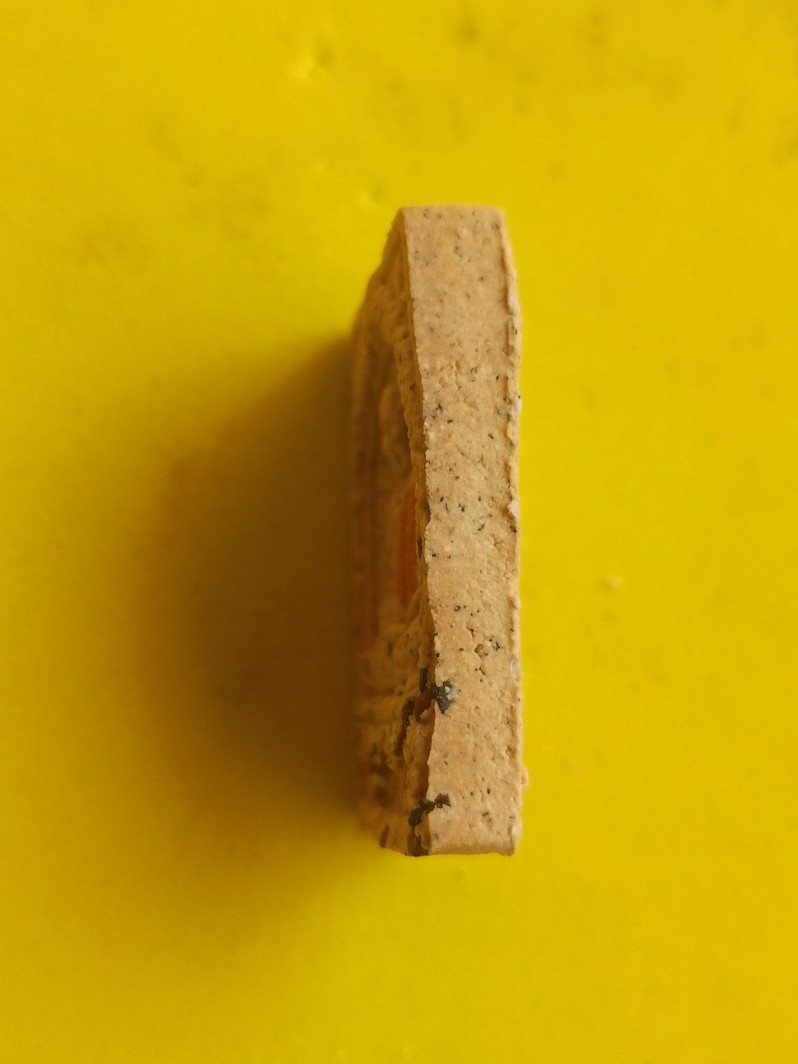 พระผงรูปเหมือนหลวงพ่อเกษมเขมโก ฝังพลอย จีวร หลังตอกโค้ด ปี 23 |