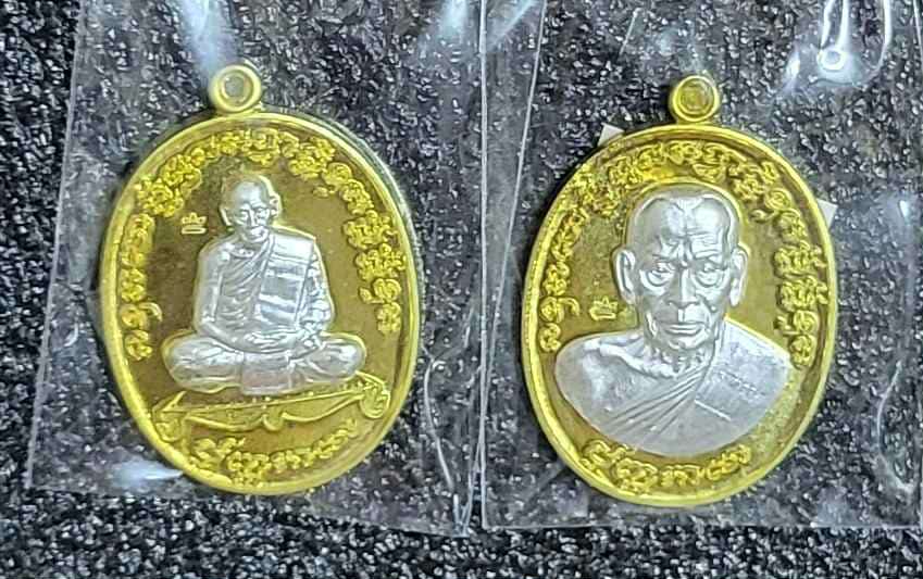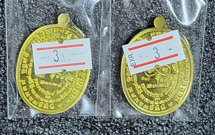 เคาะเดียวแดง เหรียญหลวงพ่อพัฒน์ รุ่นเจริญพร 2 เนื้อฝาบาตรหน้ากากเงิน รวม 2 เหรียญ |