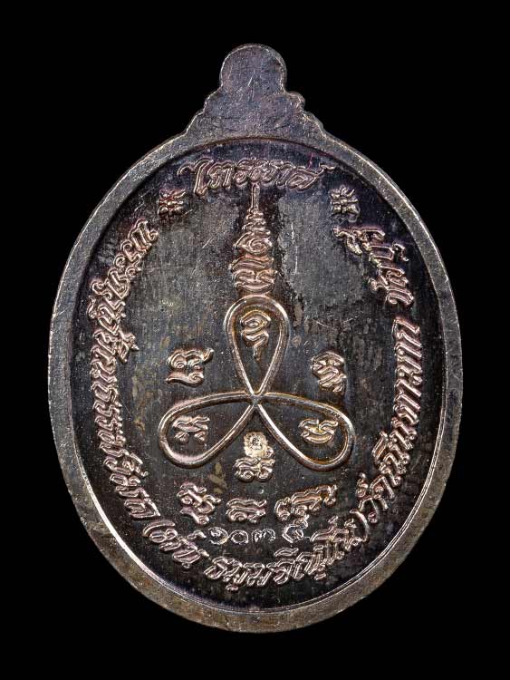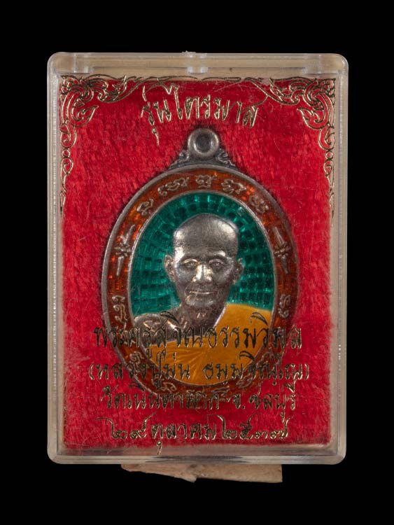 เหรียญไตรมาสปี 37 หลวงปู่ม่น วัดเนินตามาก เนื้อเงินลงยา เลข1035 พร้อมกล่องเดิม รับประกันตามกฎ