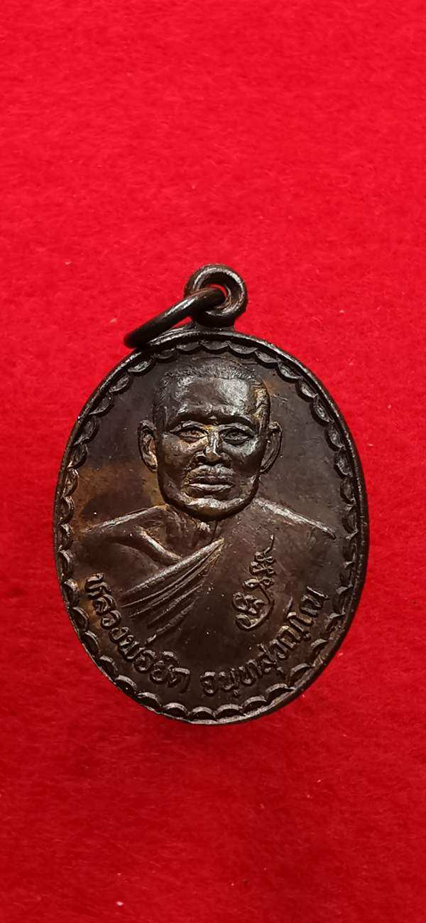 เหรียญหลวงพ่อยิด วัดหนองจาก จ.ประจวบคีรีขันธ์ รุ่นพิชิตชัย ปี2536 เนื้อทองแดง หลังพอกครั่ง |