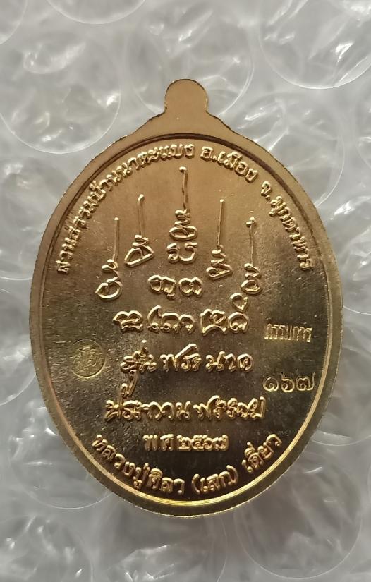 หลวงปู่ศิลา สิริจันโท วัดโพธิ์ศรีสะอาด จัดสร้างเพื่อซื้อที่ดินถวายสวนธรรมสังกัด บ้านนาตะแบง เนื้อกระไหล่ทองลงยาเขียว ลงยาจีวร ตอก"กรรมการ" พร้อมกล่อง