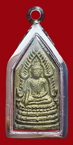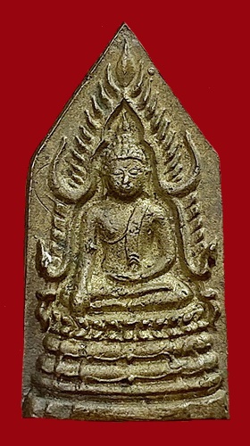 พระพุทธชินราช ท่านเจ้าคุณศรี(สนธ์) วัดสุทัศนฯ พิมพ์ห้าเหลี่ยมใหญ่ เนื้อทองเหลือง ปี2494 มีบัตรรับรองจีพระ เคาะเดียว |