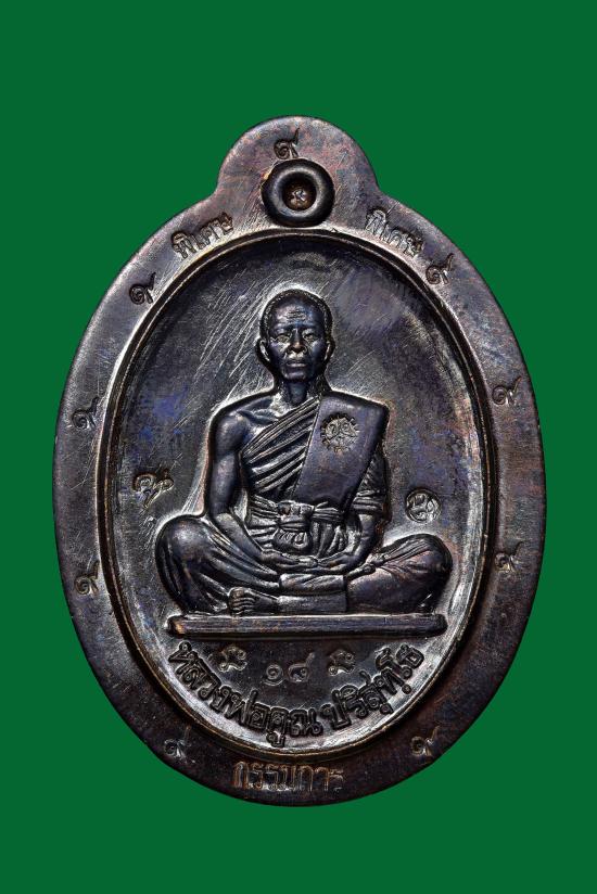 วัดใจ เหรียญหลวงพ่อคูณ พิมพ์สร้างบารมี ย้อนยุค รุ่นพุทธคูณสยาม (มหาลาภ) ปี 19 ออกวัด ใหม่อัมพวัน ปี 2554 เนื้อทองแดงรมดำ หลังแบบ ชุดกรรมการ ไม่ตัดปีก สภาพสวย หมายเลข 18