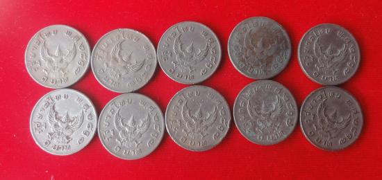 +++ เหรียญ 1 บาท มหาบพิธ เหรียญครุฑปี 17 ผ่านใช้ จำนวน 10 เหรียญ +++