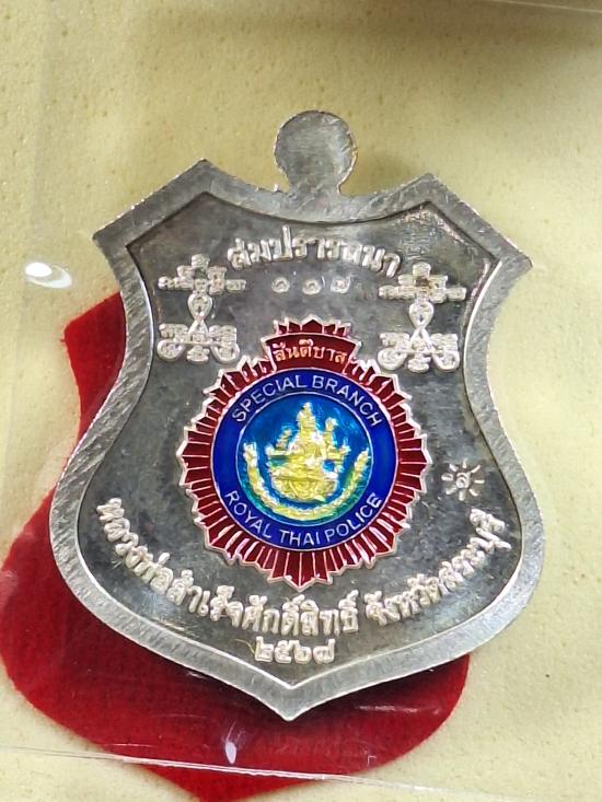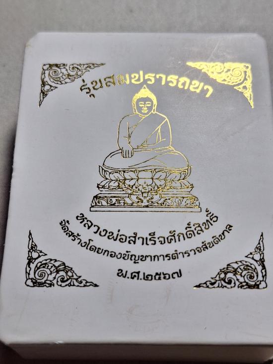 หลวงพ่อสำเร็จศักดิ์สิทธิ์ รุ่นสมปรารถนา กองบัญชาการตำรวจสันติบาล ปี 67 เนื้อเงินลงยาแดง สวยงามกล่องเดิมครับ |